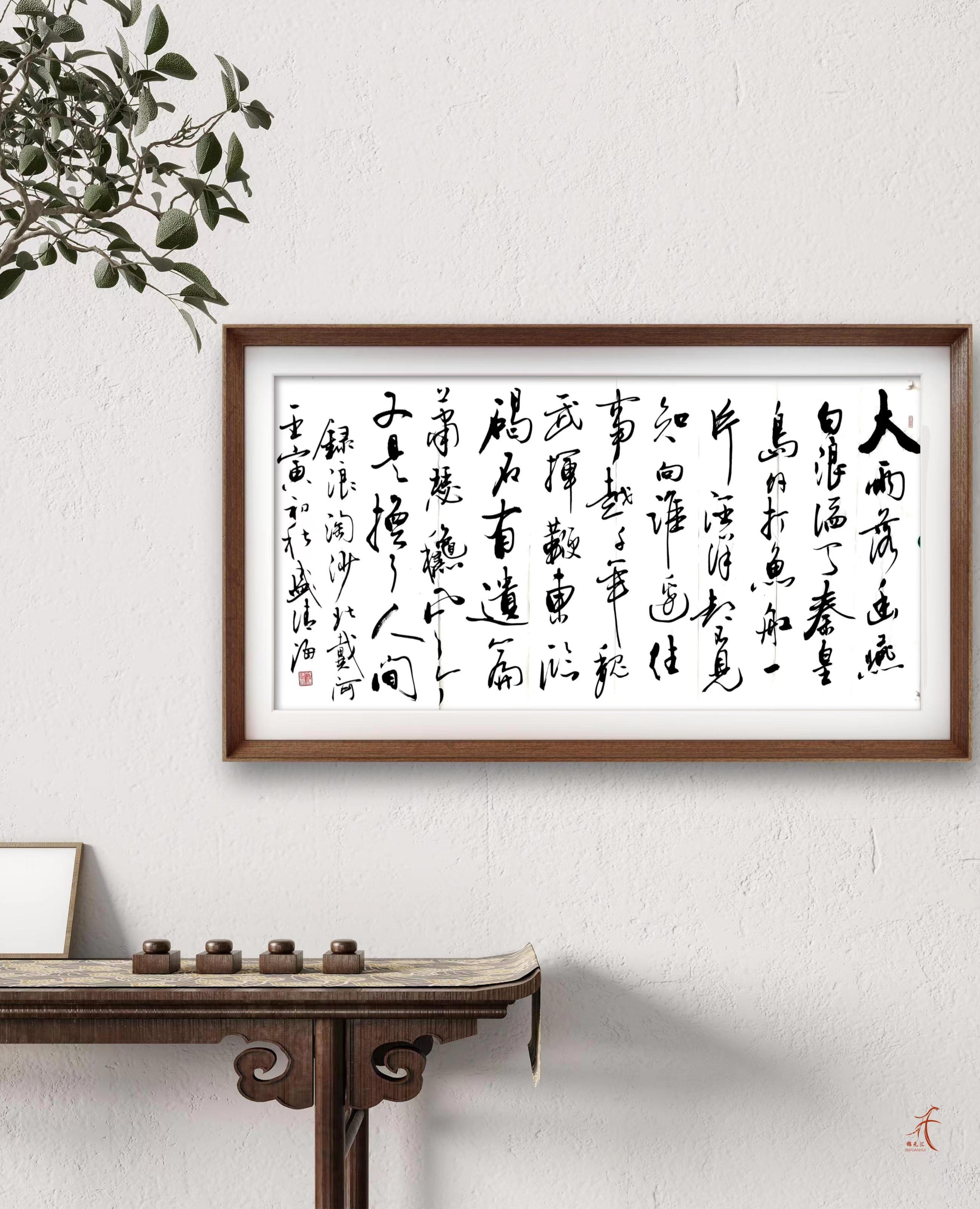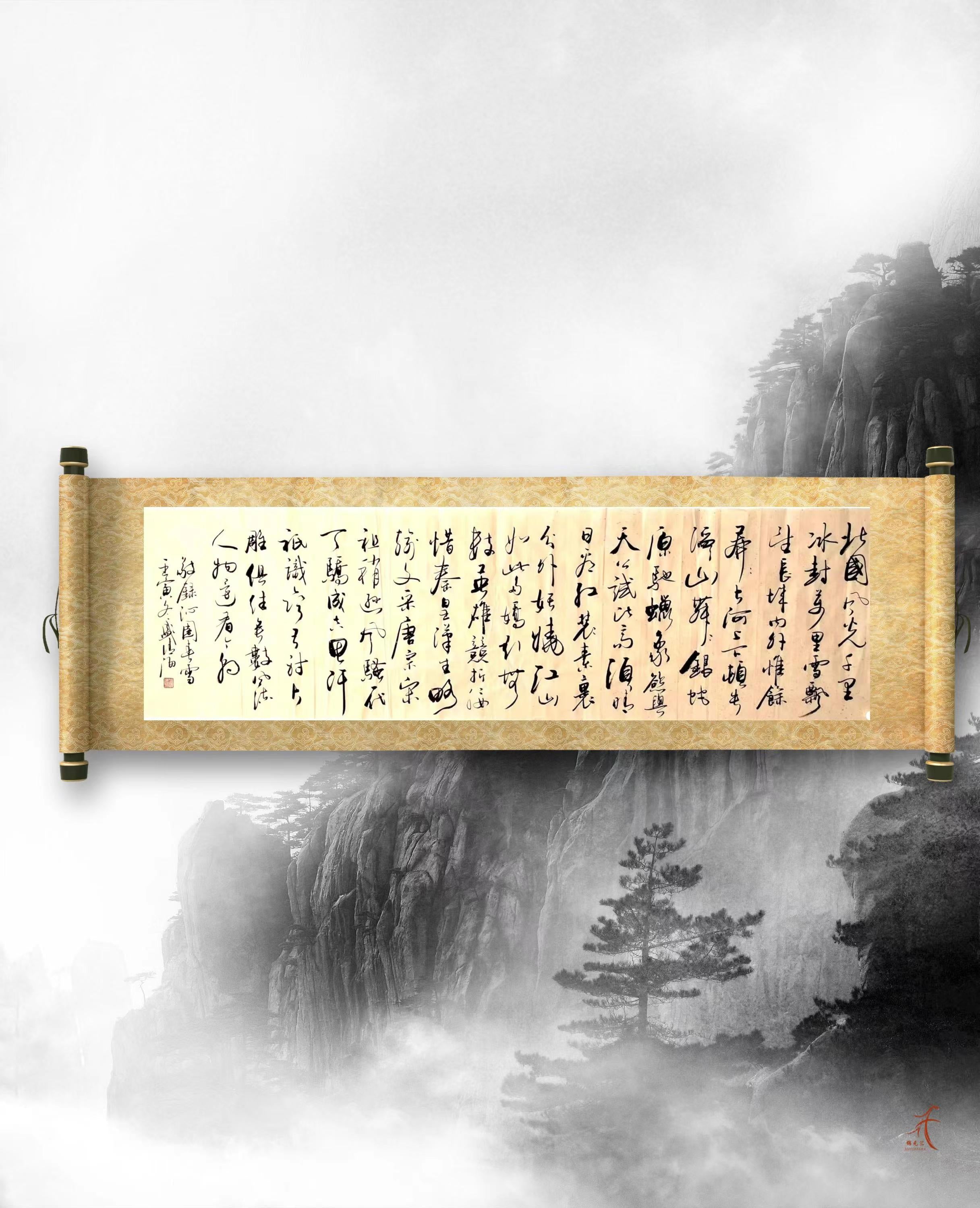 Chinese calligraphy-Scroll Customize Simple. Red or blue and green mountain