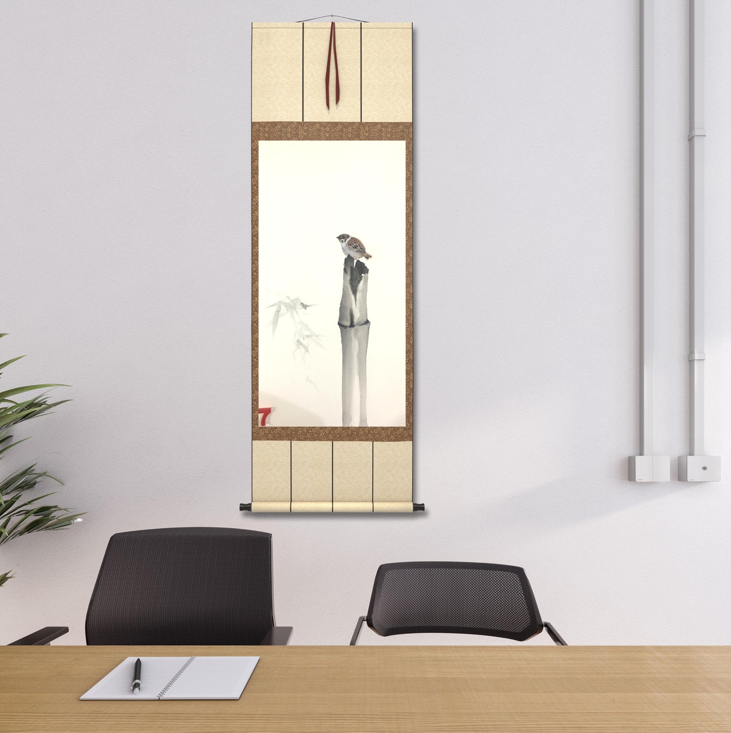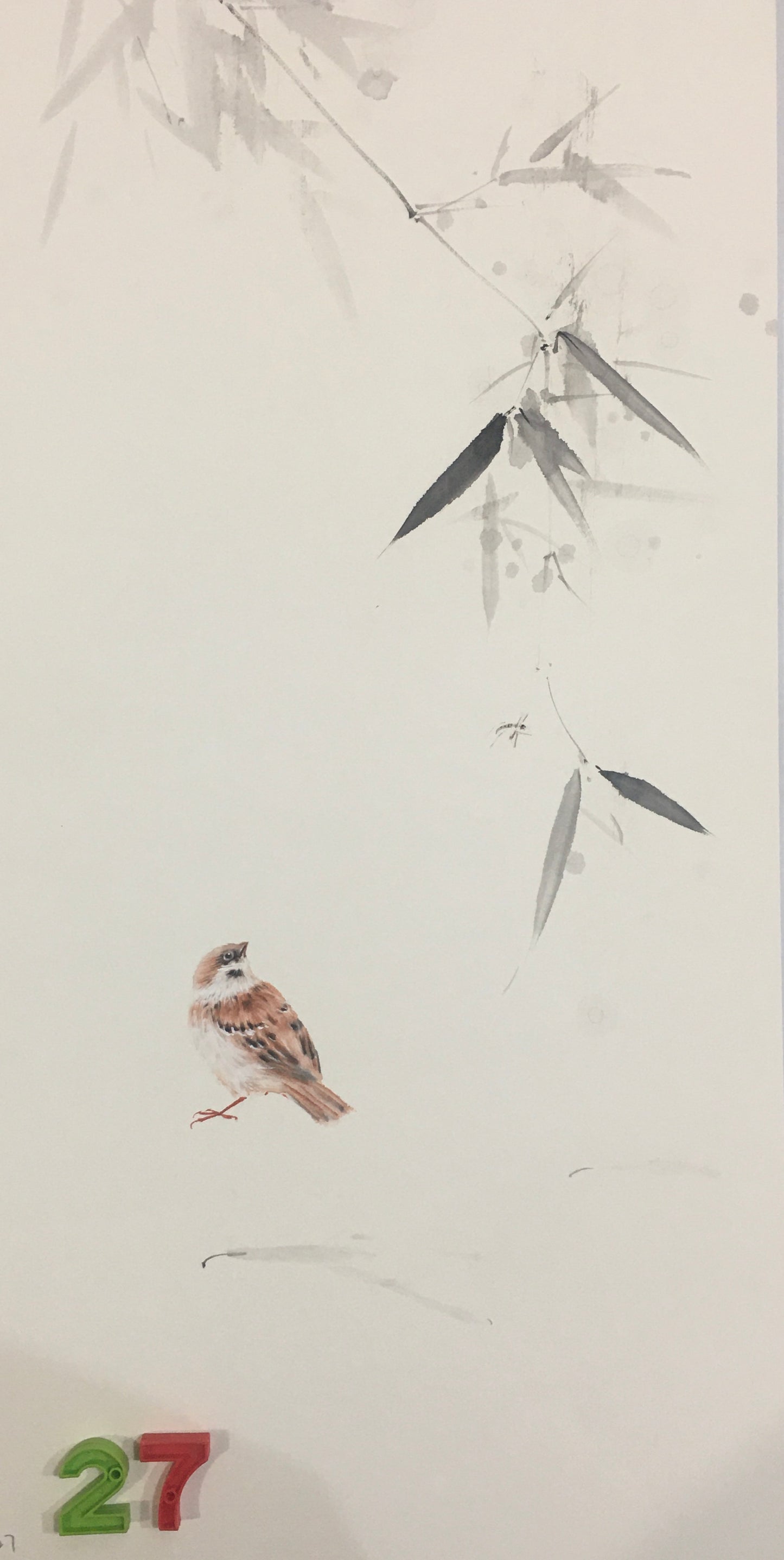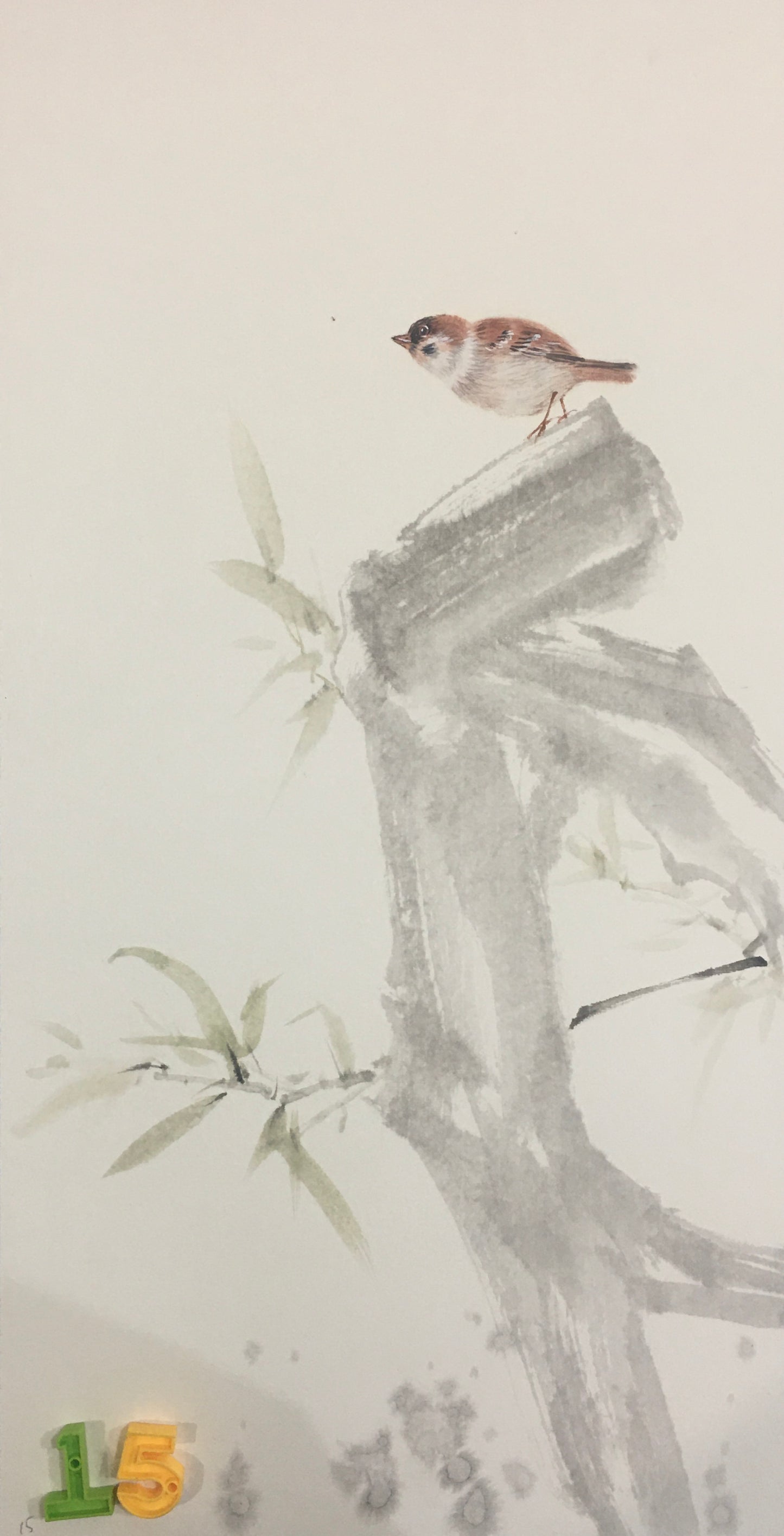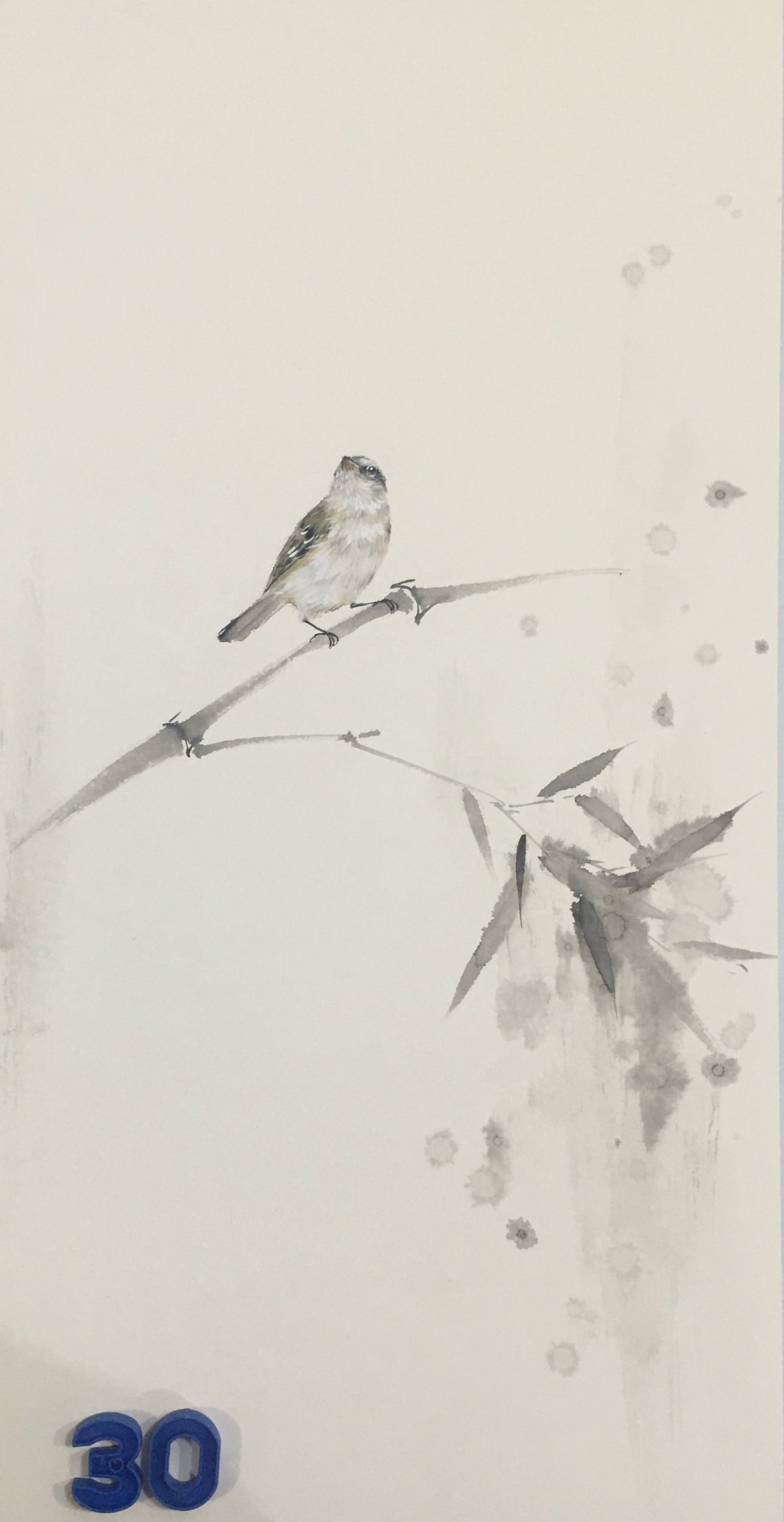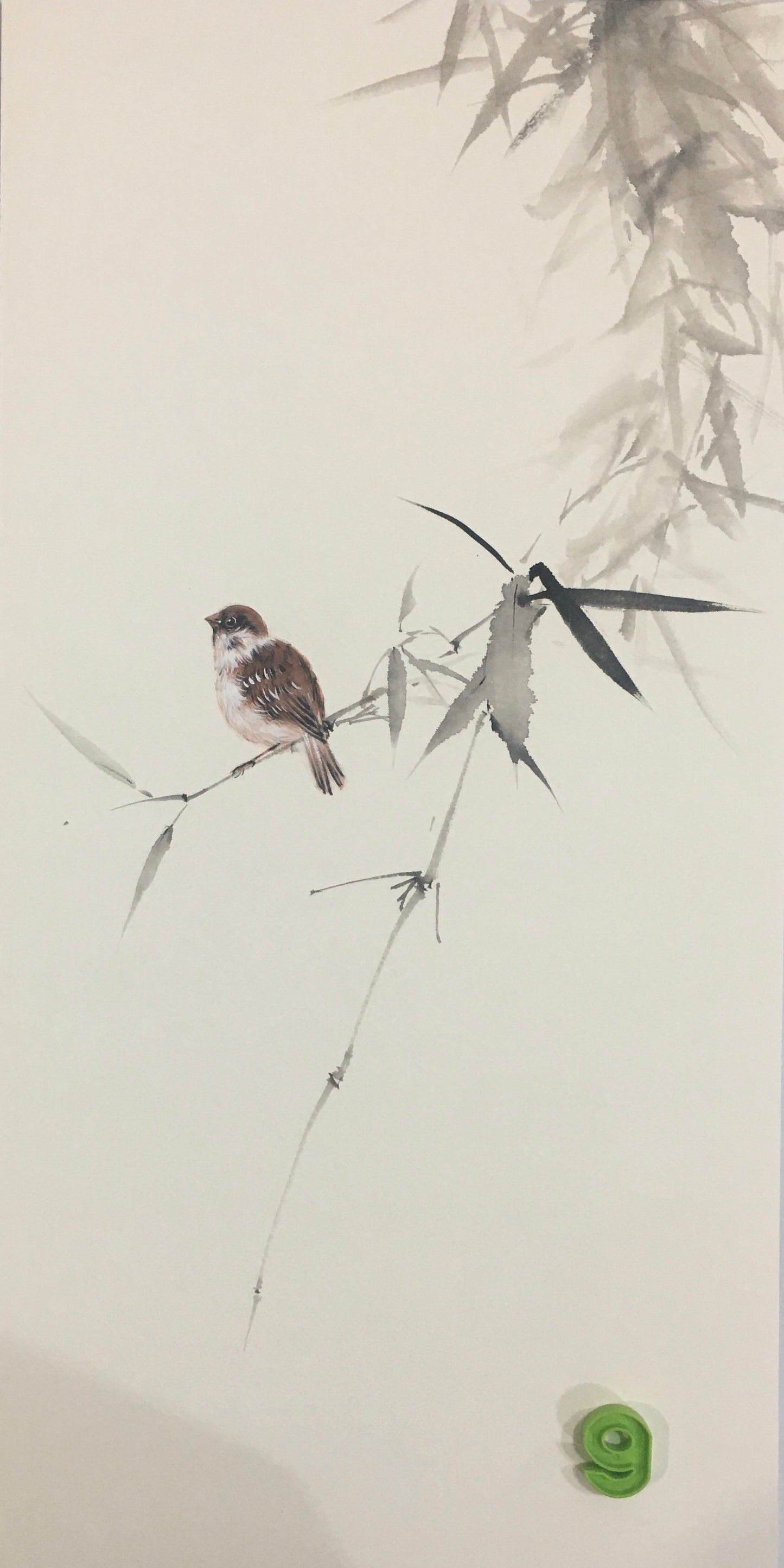 Chinese realistic painting-detailed drawing. Painted on hard paper jam. Birds and bamboo Living room decoration